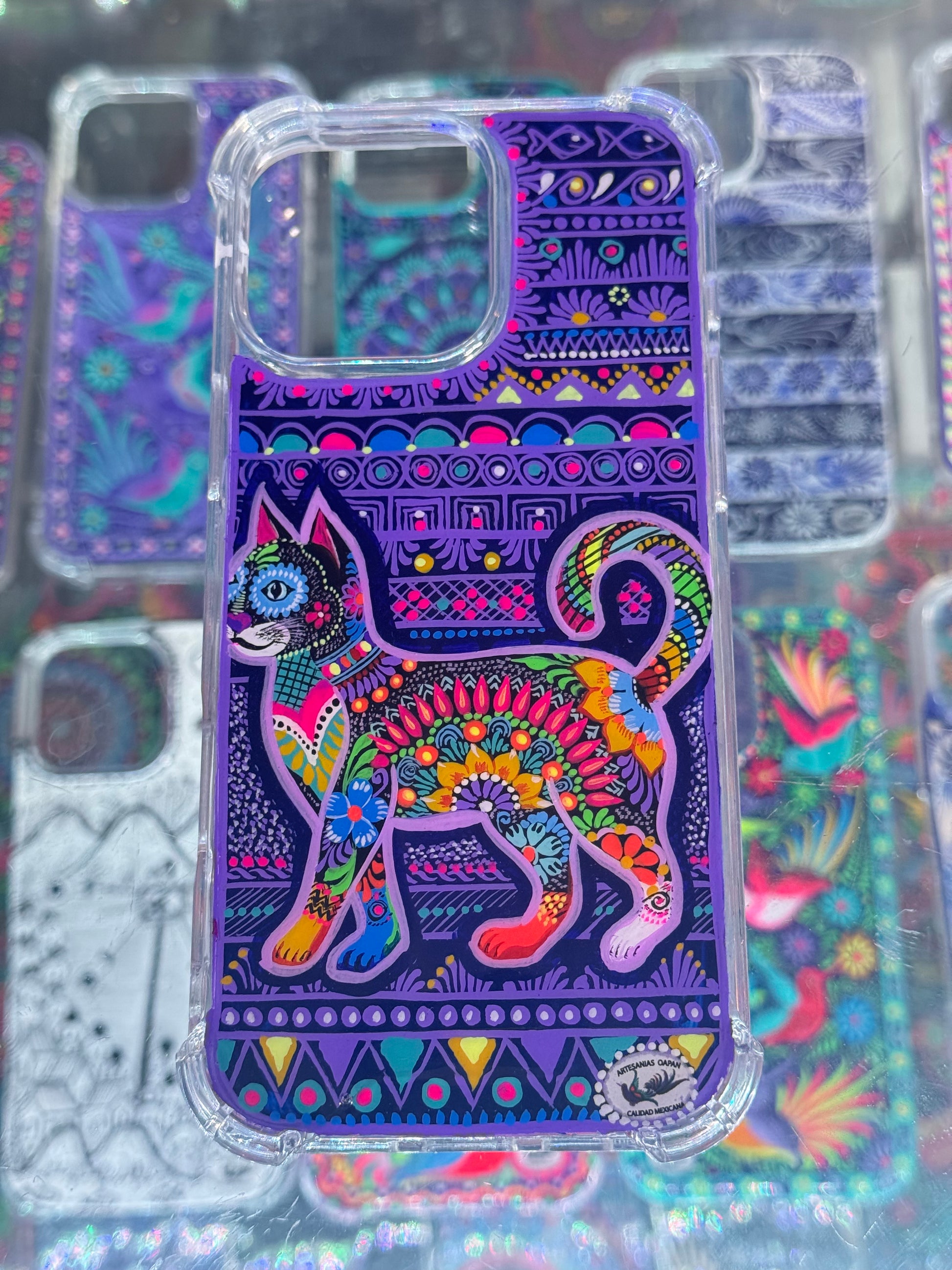 ¡Dale un toque creativo a tu IPhone con la funda Michi Mándala! Con un hermoso gatito y un mandala color morado, este diseño pintado a mano te hará destacar. Las grecas coloridas agregan un toque único y elegante. ¡Protege tu teléfono y despierta tu creatividad!